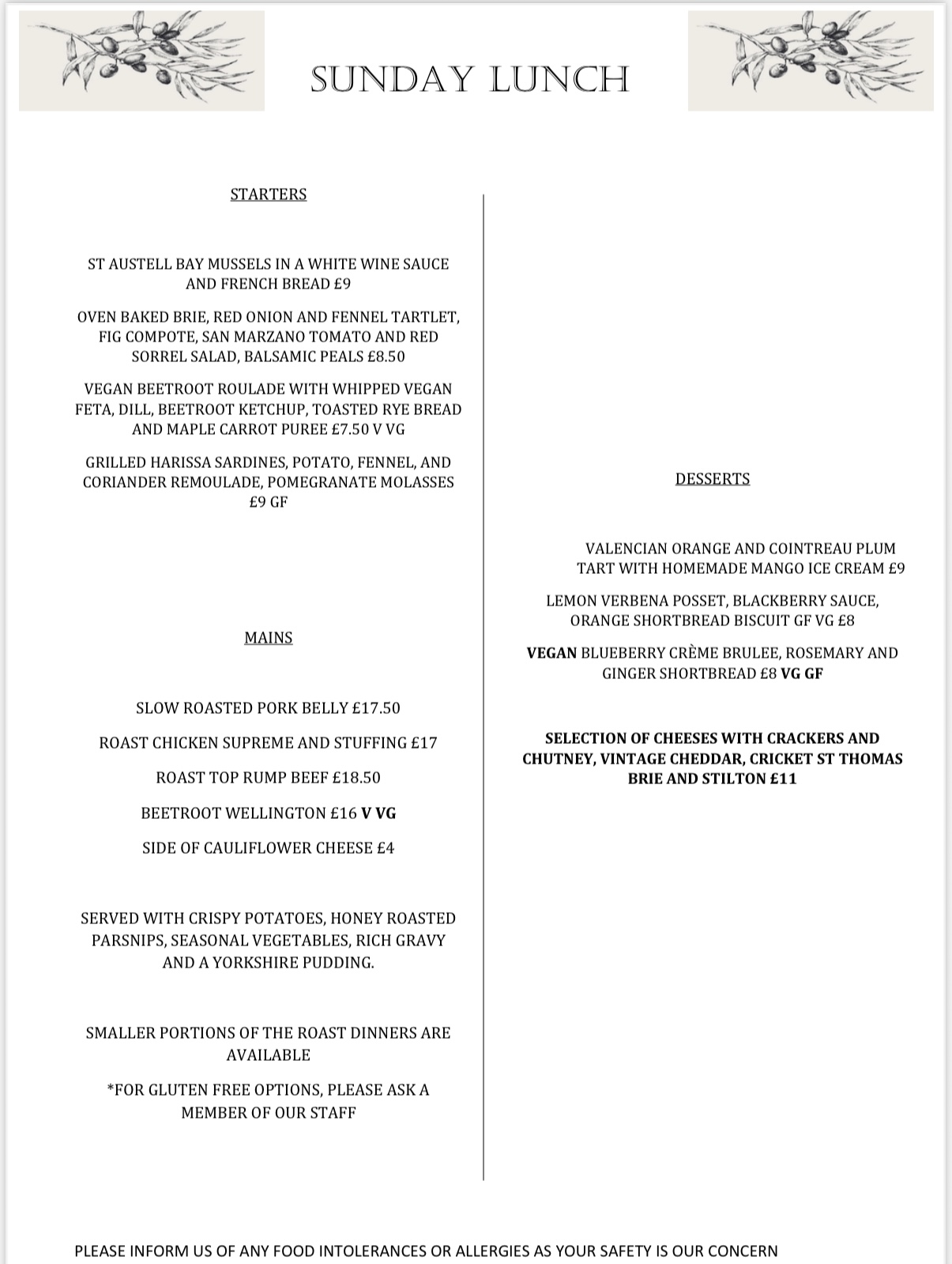 A fantastic selection of food dishes for all that are all cooked from fresh and sourced from local suppliers.